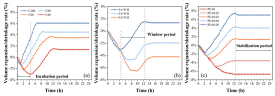 - The expansion process of PEA could be clearly divided into three stages: the incubation period, the window period, and the stabilization period. The window period was correlated with the setting time of the grout. Once the grout reaches its final setting and attains a certain strength, PEA struggles to produce effective expansion.