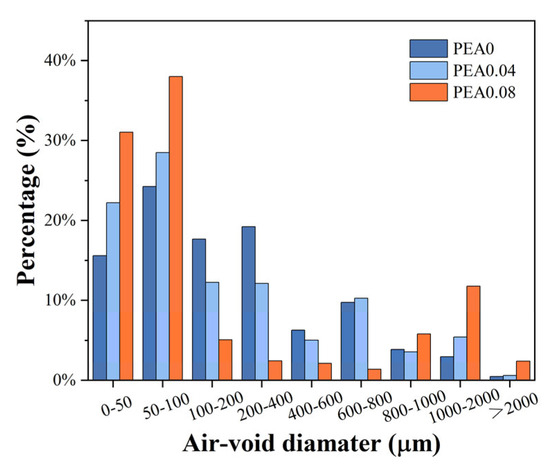 - The bubble spacing coefficient effectively illustrates the impact of PEA on gas production. As the PEA content increased, the bubble spacing coefficient decreased and air contents increased. However, it is not advisable to blindly increase its content. Its higher content can hinder the compaction of the grout structure, leading to a decrease in the compressive strength of the grout. Therefore, there exists an optimal dosage range for the grout containing PEA of approximately between 0.04% and 0.06%.