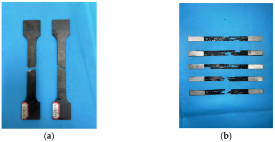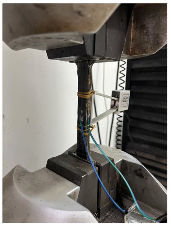 Figure 5 illustrates the testing method for the specimens. The tensile performance was evaluated using a universal testing machine at a loading rate of 0.2 mm/min. An extensometer with a gauge length of 50 mm and two strain gauges were installed at the center of the composite plate to measure strain over different gauge lengths. The tensile strain was obtained by cross-verifying the data from the two devices. The testing load and displacement measured by the extensometer were directly recorded by the testing machine, while the strain gauge data were collected using an external data acquisition system.