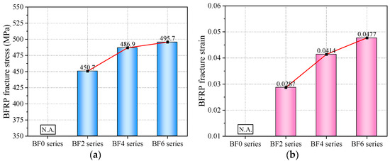(a) BFRP fracture stress; (b) BFRP fracture strain.