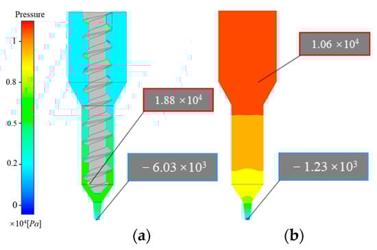 Pressure distribution contour: (a) screw-based printer; (b) plunger-based printer.