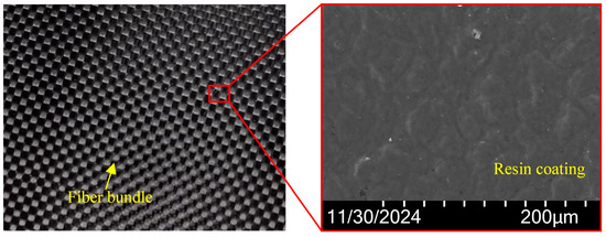The experimental setup and characterization method of nanosecond laser ablation of CFRP grooves are shown in Figure 2. As shown in Figure 2a, the experimental system mainly consists of a nanosecond laser, beam expander mirror, reflector, focusing lens, three-axis carrier stage, and control system. In this experiment, the nanosecond laser device (BWT, Microtreat, Suzhou, China) was used to carry out the groove experiment under different laser parameters to investigate the influence law of the laser parameters on the groove morphology and contour. The specimen (as seen in Figure 3) was placed on the table, the laser spot was focused on the surface of the specimen, and the scanning was all performed with a single-direction motion, and the surface of the specimen was ultrasonically cleaned at the end of the experiment (ultrasonic cleaning machine, KQ-700V, Shumei, Shenzhen, China). In addition, as shown in Figure 10b, after cleaning and drying, the specimens were observed by an ultra-depth of field microscope (VHX6000, Keyence, Osaka, Japan) for the surface micromorphology and groove profile. Then, the microscopic morphology of the groove surface was tested by scanning electron microscopy (SEM, SU5000, Keyence, Japan). As a note, the depth of the groove is the distance from the surface of the material to the bottom of the groove, and the width is the width of the top of the groove. Each set of parameters was measured three times and averaged.