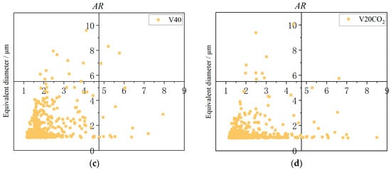 Figure 13. Relationship between equivalent diameter and AR under different process parameters. (a) V20; (b) V30; (c) V40; (d) V20(CO2).