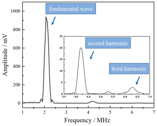 It is a well-established fact that higher-order harmonic signals are typically significantly weaker than fundamental signals. In order to obtain distinct higher-order harmonic signals, the testing system must meet the following requirements: firstly, the energy of the excited ultrasonic waves must be sufficiently high to ensure the quality and intensity of the higher-order harmonic signals. Secondly, it is imperative to minimize interference from noise signals generated by the system. Noise may originate from electronic equipment or environmental factors. To reduce the impact of noise, signal processing methods with high signal-to-noise ratios should be employed, and environmental noise interference should be mitigated. Finally, it is essential to ensure that the received time-domain signals have adequate resolution. The resolution is contingent upon the system’s sampling rate and temporal resolution. Higher sampling rates provide better frequency resolution, allowing for more accurate differentiation between fundamental and second harmonic signals.