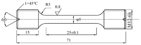 To test the mechanical properties of the ZTC4 titanium alloy, the material was processed into a standard tensile specimen through precise wire cutting (Figure 1).