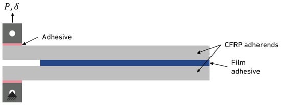 This work aims to study the potential of a novel 0.1 mm thick cyclic olefin-based adhesive film, a development product of Zeon® Corporation (Chiyoda-ku, Tokyo, Japan) named LS adhesive. In this work, rheological and mechanical properties were determined using adhesive characterisation tests as a first systematic approach to characterising this type of adhesive. Dynamic mechanical analysis (DMA) was performed to assess the relaxation of the material and retrieve the glass transition temperature . To comprehensively evaluate the mechanical properties of the hot-melt cyclic olefin-based network adhesive for the first time, a diverse array of standard and non-standard test methodologies were implemented under quasi-static loading conditions. Tensile properties are determined following bulk tensile properties and shear properties are determined following the thick adherent shear test (TAST). Regarding the fracture toughness of the material, researchers have consistently used the Double Cantilever Beam (DCB) test to determine the critical energy release rate in Mode I and the end-notched flexure (ENF) test for Mode II [3,11,12]. The use of the J-integral method provides precision in estimating the fracture toughness values for both modes [13,14]. Subsequently, similar and dissimilar single lap joints (SLJs) using aluminium and carbon fibre-reinforced polymer adherents (CFRPs) were manufactured to analyse the failure mode of the joint and understand the adhesion for different material substrates at room temperature and high temperature. The reported property values were determined using a minimum of three specimens to calculate the average and respective standard deviation.