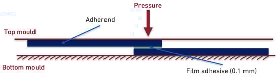 To study the performance of the hot-melt adhesive in a joint, aluminium 6082-T6 and CFRP (SEAL® Texipreg HS 160 RM) SLJs were manufactured using only one overlap length of 12.5 mm. The joints were produced in an aluminium mould (Figure 4) coated with a mould release agent.