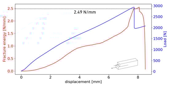 P- and fracture energy curve of the ENF specimen with the rotations displayed in Figure 14.