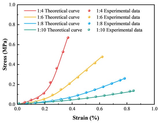 - A precise damage constitutive model that considers the initial compaction stage and axial crack strain evolution was developed. The theoretical curves match well with experimental data, accurately reflecting the mechanical parameters and damage characteristics of CTB with varying c/t ratios.