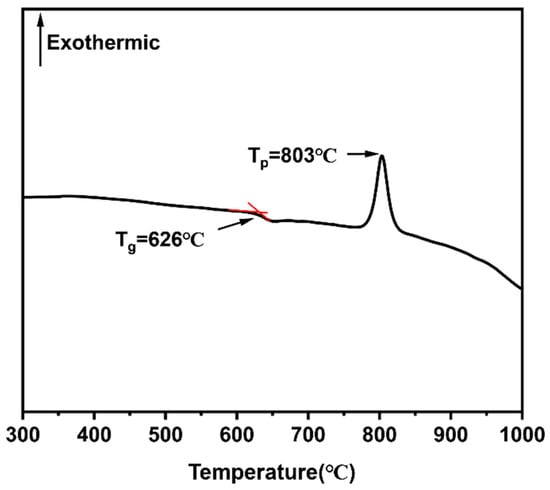 Figure 1 depicts the DTA curve of the CMZBS glass employed in this study, revealing a glass transition temperature (Tg) at 626 °C. Such a low Tg value is advantageous for sintering as it significantly reduces thermal stresses, ensuring the structural integrity of the final product. Additionally, it promotes efficient densification, which in turn reduces energy consumption during the sintering process. These characteristics render the CMZBS glass an excellent candidate for fabricating durable glass–ceramic composites that exhibit superior mechanical properties. Moreover, a crystallization peak observed at 803 °C signifies the beginning of crystallization within the glass matrix. The nucleation and growth of microcrystals contribute to the material ordering, which reduces phonon scattering and increases the mean free path of phonons [33]. This, in turn, increases the thermal conductivity of the composite. Simultaneously, the enhanced crystallinity is expected to decrease the dielectric properties [34,35,36], positioning the CMZBS/Al2O3/AlN-whisker composite as a promising candidate material for applications demanding high thermal and electrical performance [37].