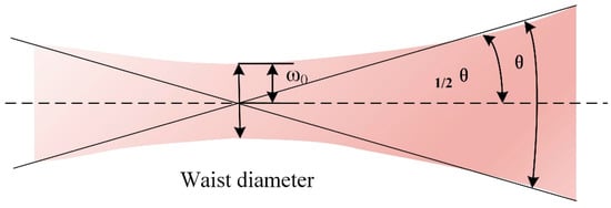 In the realm of fiber lasers, the beam parameter product (BPP) serves as a pivotal parameter for quantifying the quality of the laser beam, exerting a direct influence on the quality of the laser welding processes. The BPP of a laser is constant. When the beam waist or focal point is augmented via an optical system, the divergence angle correspondingly diminishes. Conversely, an increase in the divergence angle leads to a reduction in the size of the beam waist or focal point, as depicted in Figure 5. The BPP can be straightforwardly calculated using the beam waist size and the far-field divergence angle. This value provides insights into the beam’s propagation characteristics and focus ability. As detailed in reference [], the specific calculation is presented in Equations (6)–(8).