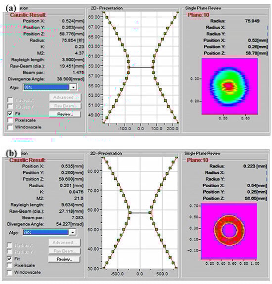 Results of the beam quality: (a) core laser; (b) ring laser.