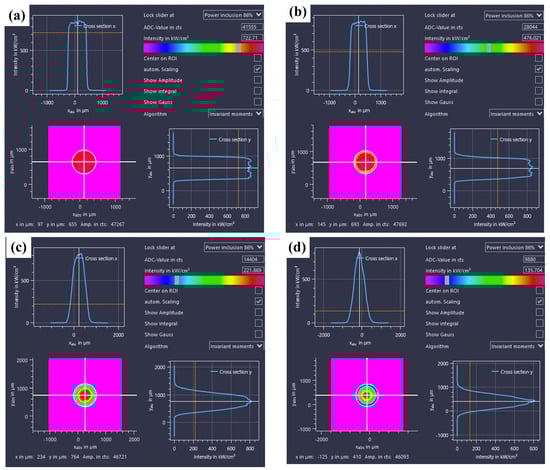 In this research, an in-depth investigation is conducted on four distinct light-field distributions (Table 4). The energy density distributions were measured using a laser focus analyzer (Focus Monitor FM+), as depicted in Figure 7. Specifically, the energy distributions along both the X-axis and the Y-axis demonstrate a characteristic pattern where the values are higher at the center and gradually decrease towards the two sides, conforming to an overall Gaussian distribution. Notably, as the light-field configuration evolves from H to HHHH, there is a concomitant increase in the degree of concentration of the laser energy distribution. Nevertheless, in practical welding applications, it has been found that the degree of laser energy distribution does not exhibit a straightforward positive correlation with the welding performance.