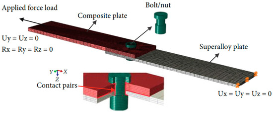 Finite element model and contact pair setup of 2D C/SiC composite—high-temperature alloy bolt joint structure [13].