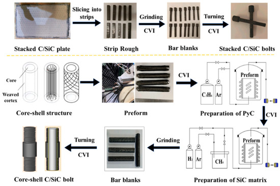 Preparation process of laminated and core–shell C/SiC bolts [20].