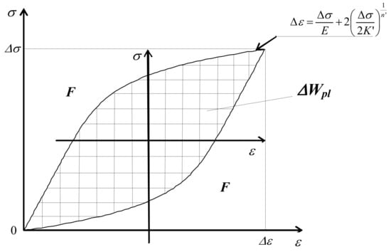 The basis of most energy descriptions of the fatigue process is the energy dissipated in the material during alternating loading until component failure, cf. [25]. It is assumed that the failure criterion is met when reaching the critical value of this energy. In most damage summation hypotheses, it is usually assumed that the unit energy of the hysteresis loop does not change during the fatigue process. This means that the total energy dissipated during testing can be determined by multiplying the energy of the single loop in the so-called stabilization state by the number of fatigue cycles to fracture, :