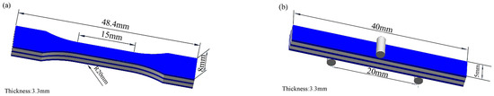 Schematic of the specimen: (a) tensile test; (b) three-point bending test.