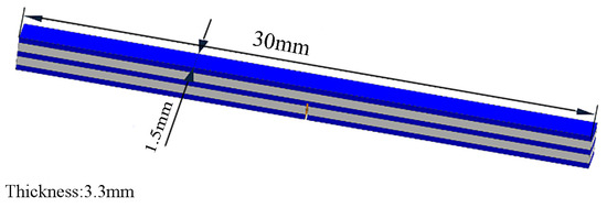 Room temperature tensile tests provide a more accurate reflection of key performance indicators, including material strength and ductility. Three-point bending tests are employed to evaluate the material’s resistance to bending loads. Room temperature tensile and three-point bending tests were conducted on the TiAl4822/Ti6Al4V MIL composite by using an electronic universal testing machine (Zwick Z100, Ulm, BW, DE). The tensile loading rate was 0.1 mm/min, while the loading speed of the three-point bending test was set at 2 mm/min. The sample sizes are shown in Figure 4a,b.
