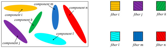 The laying angle of the unidirectional fibers is directly correlated with the axial angle of the component. Any change in the component’s axial angle will result in a corresponding adjustment in the fiber laying angle, as illustrated in Figure 6. Consequently, this leads to variations in material physical properties among the finite element units across different components within the entire structural design domain. To accurately reflect these material properties, the element stiffness matrices are computed based on the respective component directions.