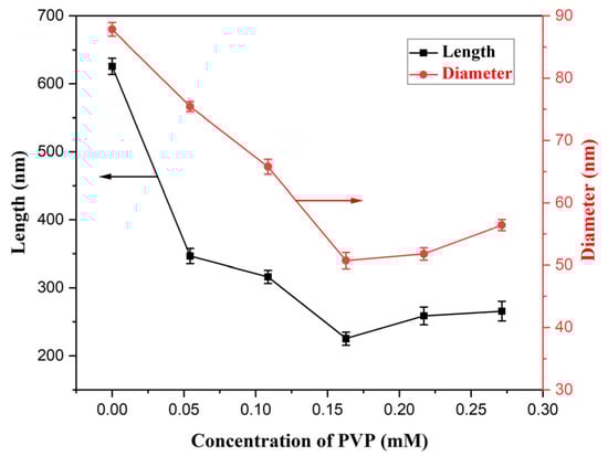 Figure 4. Broken-line graph of dimension change with various PVP concentrations.