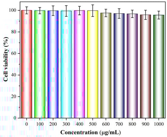 Figure 10. The cell viabilities of LO2 cells incubated with various concentrations of α-Fe2O3/Fe3O4 MNCs for 24 h (n = 3).
