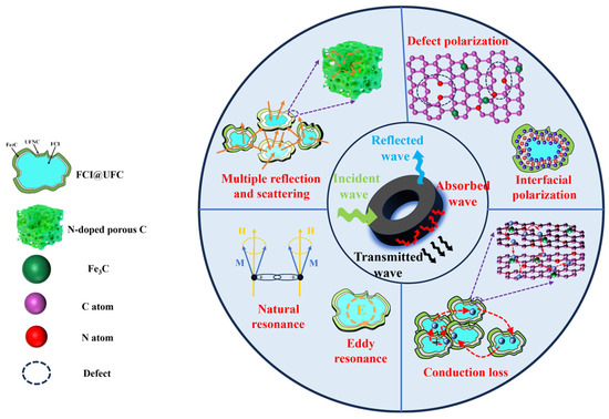 Schematic illustration of microwave absorption mechanism for FCI@UFC composite material.
