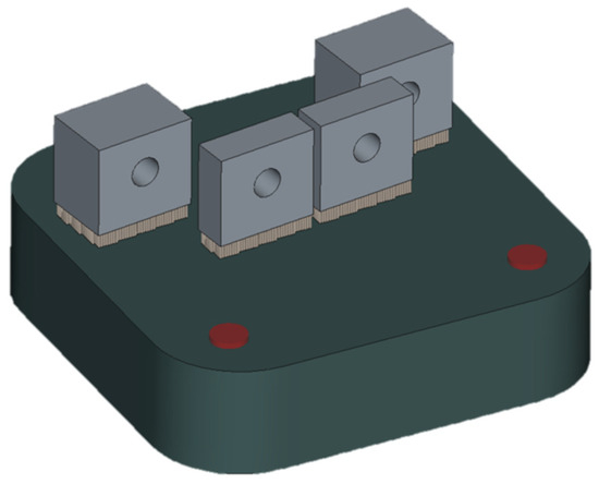 Channel specimens were additively manufactured by LPBF in a Renishaw AM125 (Wotton-under-Edge, UK) printer with a printing volume of 120 × 120 × 125 mm. A rotation of 7° around the Z-axis was used to avoid contact between the printed parts and the material coater, which could lead to printing defects (Figure 2). The printing parameters described in Table 2 are the same as those considered optimal in the study by Król et al. [25] for the maraging steel supplied by the same company and printed in the same machine. These parameters fall within the optimal processing window suggested by Guo et al. [1] for LPBF of maraging steel. Preheating was used with the objective of reducing distortions and residual stresses [26,27,28].