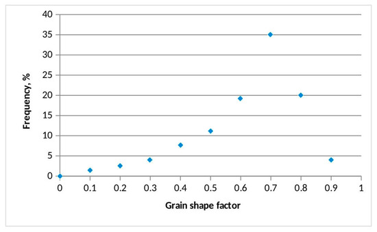 The qualitative mineralogical analysis of the samples was performed under a polarized transmitted light microscope of the brand Jenapol, Carl Zeiss-Jena, Germany. The immersion method (xylene immersion) was used for the qualitative identification of the minerals present. The magnification of the objective is 10 to 50×. The measurement of grain size and the abundance factor was performed on 3500–4000 grains. The analysis of the grain shape and size was performed using the OZARIA 2.5 software package (interval from 0 to 1), where the shape factor was determined as follows: for 0—the cross section corresponds to the shape of a needle, for 1—the cross section corresponds to a circle, while the grain size is given in micrometers (µm). The division according to the grain shape factor was as follows: from 0.0–0.2—angular; from 0.2–0.4—subglobose; from 0.4–0.6—subrounded; from 0.6–0.8 rounded; and from 0.8–1.0—well-rounded grain shape. The photomicrography system Studio PCTV (Pinnacle Systems, Mountain View, CA, USA) was used for recording [30].