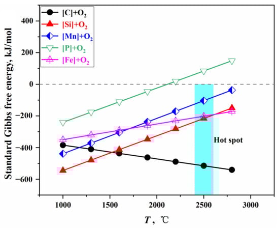3.2. Analysis of the Slag–Metal Reaction at the Molten Bath Surface Zone
