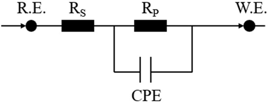 Equivalent circuit diagram of fitted data, the term “Rs” represents the resistance of the corrosion solution; “Rp” denotes the polarization resistance; “CPE” refers to the Constant Phase Element.