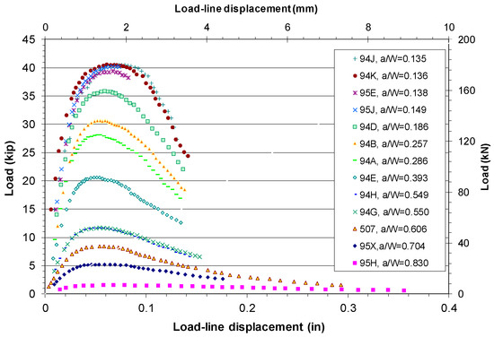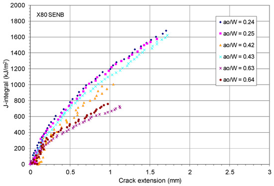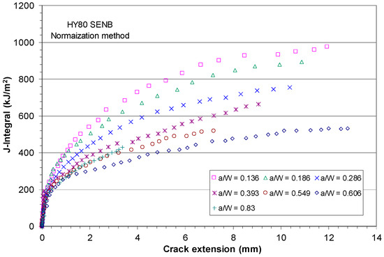 - Zhu, X.-K.; Joyce, J.A. J-Resistance curve of HY80 steel using SE(B) specimens and normalization Method. Eng. Fract. Mech. 2007, 74, 2263–2281. [Google Scholar] [CrossRef]