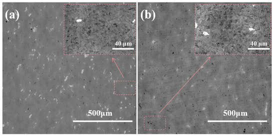 SEM images showing the microstructural variations in Ni-17Mo alloy composites with different RGO contents. (a) 0 vol% RGO. (b) 0.5 vol% RGO.