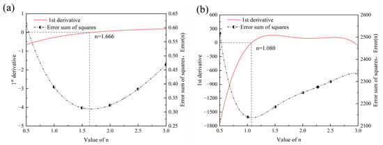 Figure 13 shows the relationship curves of n and at different temperature intervals, with the corresponding curve equations: