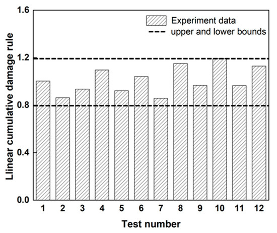 - Miner, M.A. Cumulative damage in fatigue. J. Appl. Mech. 1945, 12, A159–A164. [Google Scholar] [CrossRef]