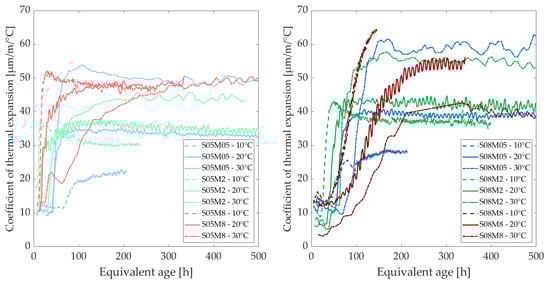 The relationship between temperature and the coefficient of thermal expansion (CTE) is frequently linked to the internal relative humidity [19,20,21]. However, to the knowledge of the authors, comprehensive studies on the influence of curing temperature on the evolution of the CTE in AAMs at early ages are inexistent.