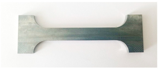 The mechanical tests were conducted to determine the tensile strength of the active soldering alloy Zn5Al1.5Mg1.5Ti. In accordance with standard experimental practice, a minimum of three test specimens per geometry were used to ensure the repeatability and reliability of the obtained data. The specimens were of standardized shape and dimensions, as shown in Figure 1, with a thickness of 4 mm.