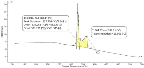 - TG/DTA analysis was applied to determine the melting point of the solder, which was confirmed. This proved the occurrence of two transformations: namely, the eutectic and eutectoid reactions. The liquidus temperature was determined to be 380 °C.