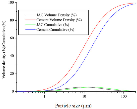 Particle size distributions of JAC biochar and cement.
