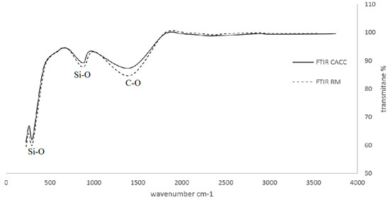 FTIR spectra of modified foam cement (CACC) and raw foam cement (RM).