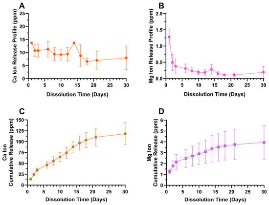 3.5.3. Calcium and Magnesium Ion Release Profiles