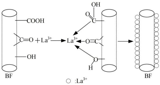 In recent years, BF has been widely used as a reinforcement material in the preparation of fiber-reinforced resin composites (FRRCs) [15,16,17]. The mechanical properties of these FRRCs are primarily impacted by fiber properties, resin characteristics, and interfacial bonding strength between the two. However, as an inorganic reinforcement, the surface structure of BF is relatively smooth, lacking functional groups. BF cannot interact with the matrix, and its interfacial bonding strength with the polymer matrix is relatively weak. Moreover, BF can easily slide from the fiber–matrix interface, resulting in an insufficient carrying capacity of FRRCs [18,19,20]. To avoid debonding, pulling out, fiber sliding, and crack bridging phenomena that may occur at the fiber–matrix interface, good adhesion or sufficient physico-chemical interaction between the fiber and the matrix should be achieved. These phenomena significantly impact the total energy consumption during crack propagation and can be controlled by fiber reinforcement [21]. Therefore, when BF is used to reinforce polymer to prepare composites, it needs to be surface-treated to improve its adhesion and dispersion [22].