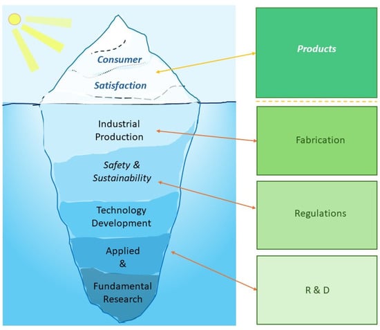 Food packaging represents a very important link in the food chain, assuring a safe food supply and delivery, for which protection, preservation, and transportation are needed. Materials [5] constitute an important part of nanoarchitectonics [6], and they are equally important for food packaging. This is because designing novel food packaging approaches relies substantially on new materials. Initially, packaging using plastics appeared very successful and economical but was later reported to be potentially harmful for the health of organisms and humans. Indeed, low degradable plastic has been one of the most often used materials for packaging, which in turn represents the largest market for plastics [7]. And although the cost of plastic production can be as high as EUR 1000 per ton [8] and their separation [9] and labeling [10] is challenging, it is their health risks [11], particularly invisible micro- and nano-plastics, and environmental pollution that necessitate the development of new sustainable approaches and green materials. Various reports are available on the development of novel materials for packaging [12,13,14], but the majority focus on specific materials, where substantial attention was given, not surprisingly, to polysaccharides, which represent an important and growing constituent of green, recyclable, and biodegradable natural products. The general trend of sustainability, recyclability, and green chemistry is distinct in the latest developments. To the best of our knowledge, an analysis of a more general picture of food packaging in the context of nanoarchitectonics, where materials, although they play a very important and even central role, are one of the main subjects of investigation, has not been presented so far.