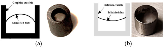 Schematics of the section slice of the flux-crucible appearance right after the DSC test in (a) a graphite crucible and (b) a platinum crucible.