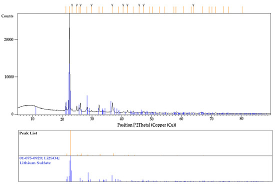 XRD result of Li2SO4 specimen showing the only phase of lithium sulfate tested in the graphite crucible.