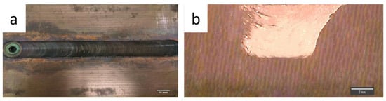 (a) top view of the processed plate (b) cross-sectional macrostructure.