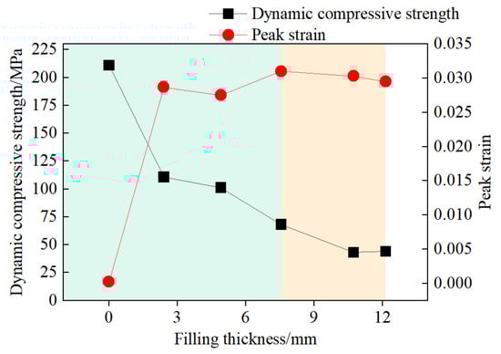 Figure 13. The relationship between dynamic compressive strength and filling thickness.