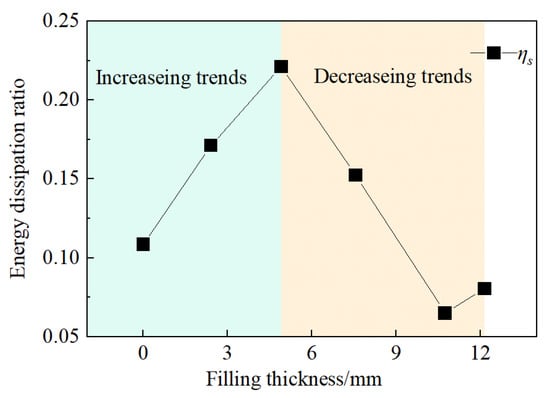 Figure 16. The relationship between energy dissipation ratio and filling thickness.