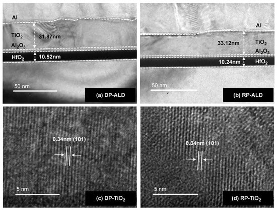 - Lee, S.; Han, G.; Kim, K.H.; Shim, D.; Go, D.; An, J. High-performance TiO2/ZrO2/TiO2 thin film capacitor by plasma-assisted atomic layer annealing. ACS Appl. Mater. Interfaces 2024, 16, 34419–34427. [Google Scholar] [CrossRef]