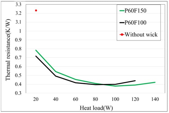 Overall, the low-fill sample (P60F100) exhibits superior thermal performance at low heat loads but gradually loses this advantage as the heat load increases. Conversely, the high-fill sample (P60F150) displays improved stability and performance under high heat loads. These findings indicate that fill ratio plays a critical role in determining the thermal performance of VC and should be carefully optimized based on specific application requirements.