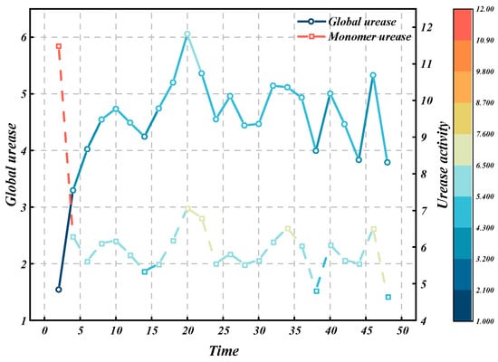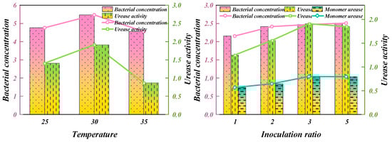 | Inoculation Ratio | Culture Time (h) | OD600 | Urease Activity (ms/cm/min) | Monomer Urease Activity (ms/cm/min) |